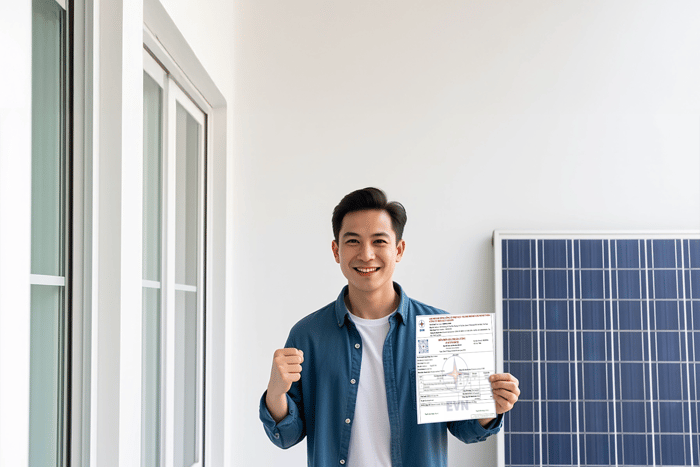 Chủ nhà hào hứng cầm hóa đơn điện giảm mạnh sau khi lắp đặt điện mặt trời.